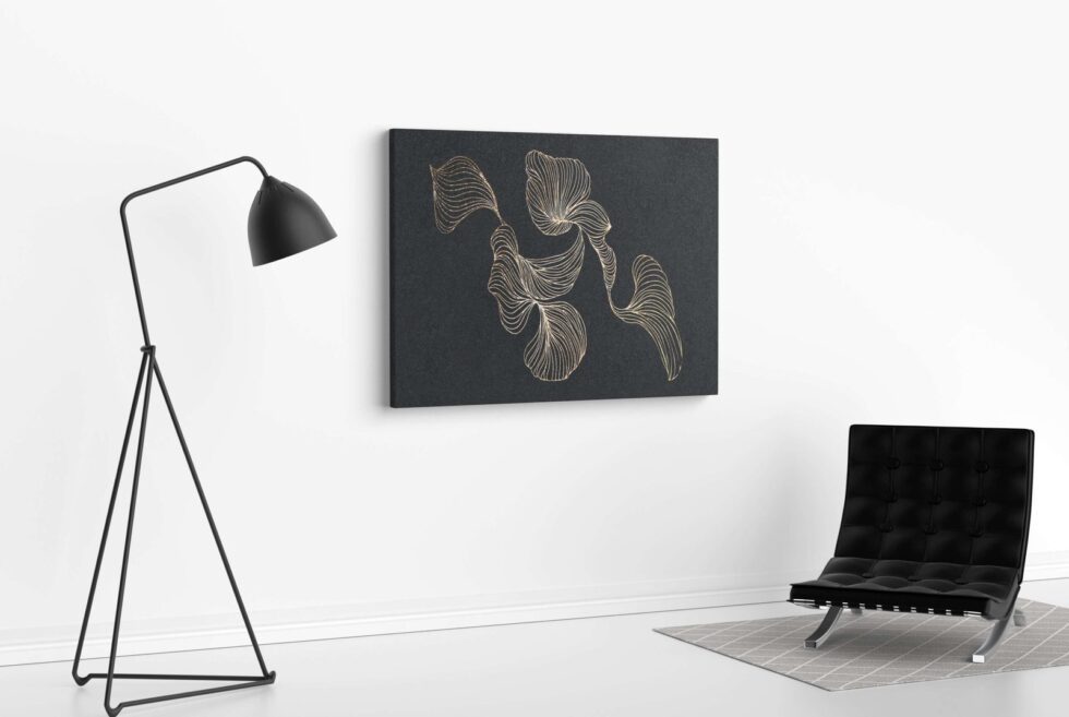 Create a stylish atmosphere with this golden round frame painting in your bedroom.